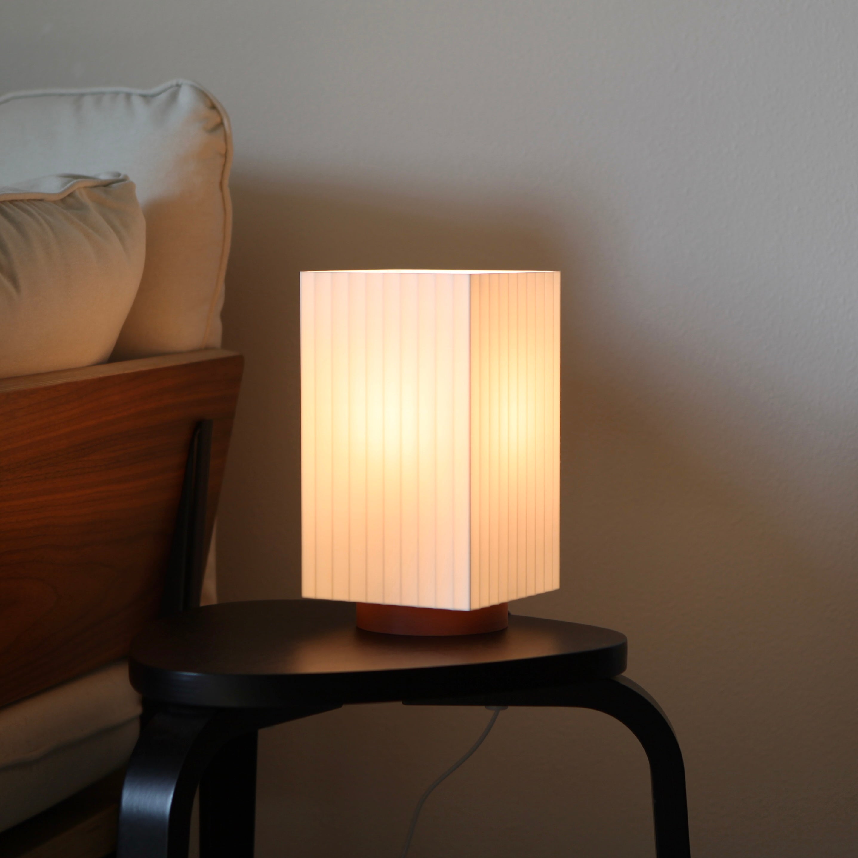 Inspired by the soft glow of a Japanese paper lantern, this lamp feels calm the moment you switch it on. Its clean, boxy shape and gentle lines make it quietly beautiful. In Japanese, mitsu can mean light/brightness or honey/nectar which felt like the perfect fit for this latest honeyfloh design.